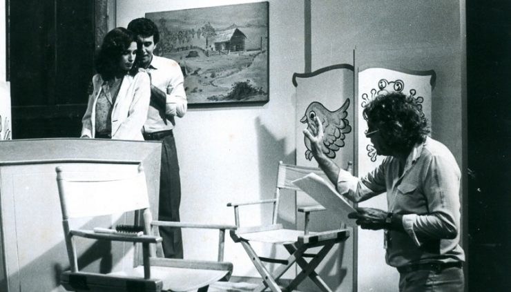 Na imagem vemos a atriz Leila Cravo e Dirceu Rabelo numa gravação no estúdio 3 da TVE. O diretor Geraldo Casé dirige o programa “O Direito de Todos”. Foto do Blog do Dirceu Rabelo.