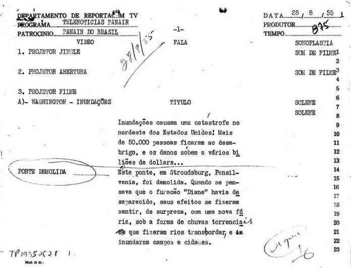 Roteiro do programa, em 55