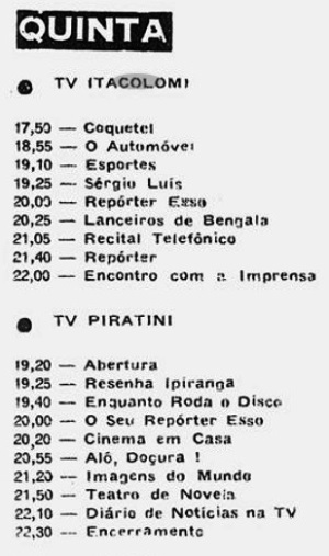 As duas tvs inaugurais integravam o grupo das Emissoras Associadas, e se alinhavam ao conteúdo da TV Tupi. Na época do “tudo ao vivo”, cada uma cuidava dos seus programas e as vezes “importavam” artistas e suas atrações, ou replicavam ideias, roteiros e formatos de São Paulo e Rio.